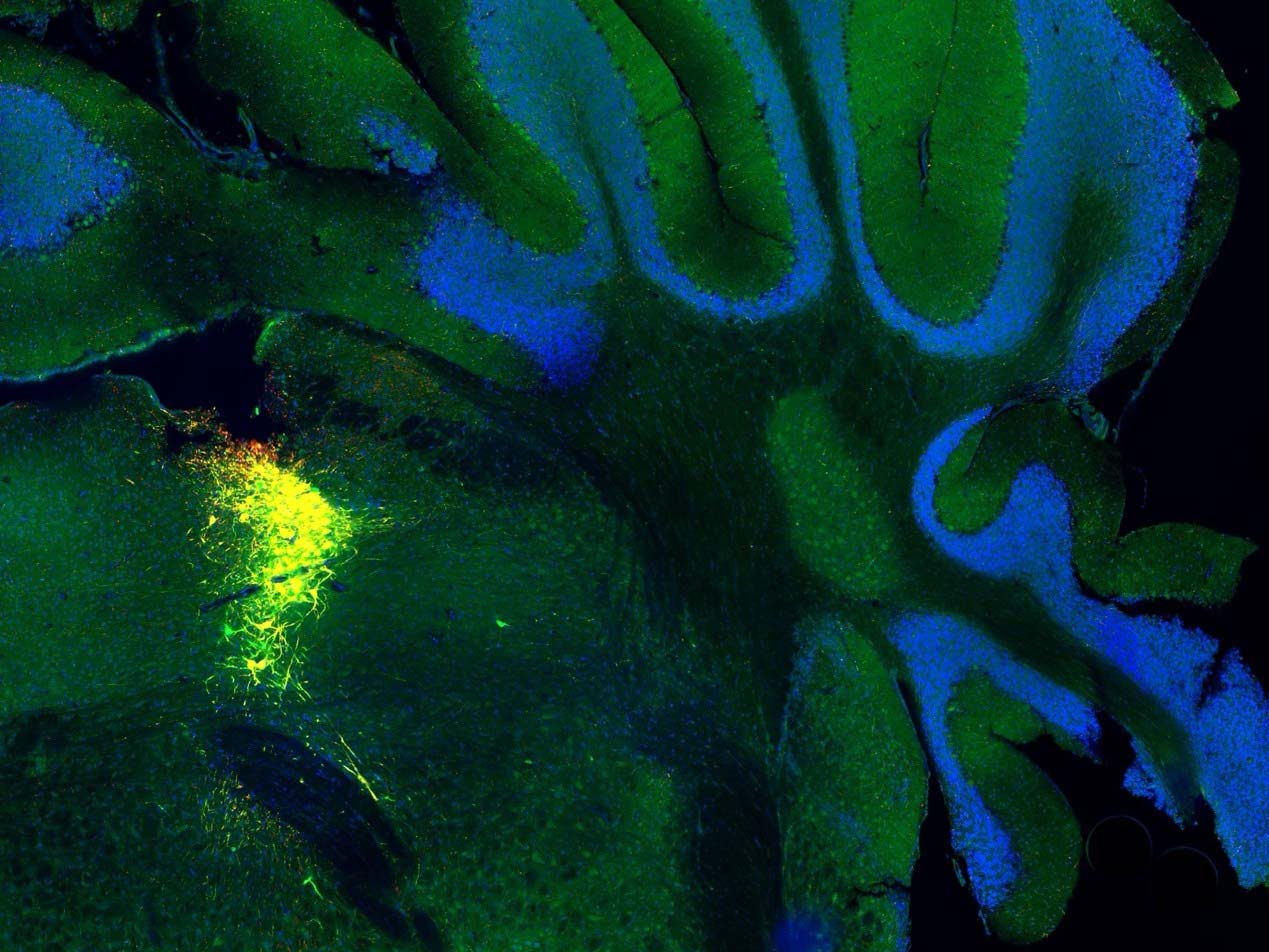 Nous avons utilisé une technique appelée « optogénétique », qui utilise des impulsions lumineuses pour activer sélectivement le locus coeruleus chez la souris tout en scannant leur cerveau par IRM.